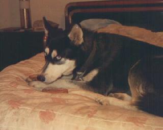Cody Passed at 2pm on March 10, 2003 at the ripe old age of around 14 1/2. He had lost the use of his back legs, and in the last few days was unable to even stand up. For a guy that had been the Husky at the head of the pack this must have been very upsetting to him. After a few days of this it was finally apparent to me that his time had come, and I had to make the hardest decision of my life. I persuaded the vet to send their techs over to put him to sleep, after waiting an agonising few hours for them to get here, the process was very quick and was over in a matter of minutes. He went very peacefully he didn't even get up. I Love him very much and will miss him terribly, he is with his "brother" 'Cade now and we will all be together again one day.